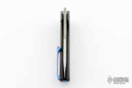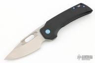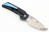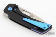 This Nymble Framelock Flipper by EMP EDC features a satin finished blade with notched thumbrest and flipper, and a thumbhole. The handle has a black titanium frame, anodized titanium backspacer and tip up clip, upgraded titanium hardware. Comes with an upgraded mokuti  backspacer and clip. Comes with original box, papers and original hardware. Rides on bearings, nice detent, lockup and blade seating. Excellent condition.