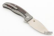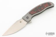 The Legatus by Dutch Blade Works features a satin finished blade with flipper. The handle has a blasted titanium frame with matching tip up clip and backspacer with lanyard pin, red G-10/carbon fiber inlays, stainless lockface insert, ceramic detent and bearings. Very nice action. Nice in hand. Comes with original box, zippered case and COA. These are a limited run of 100. Excellent condition.