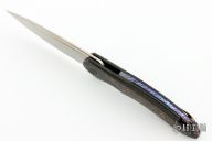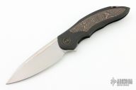 The Makani features a drop point blade made from CPM 20CV stainless steel, keeping this folding knife looking and feeling brand new long after you take it out of the packaging. The handle is made from black anodized titanium and features a stunning copper foil carbon fiber inlay that makes this piece truly one-of-a-kind. Comes with original box and papers.  S/N 050/300.  Excellent Condition.
