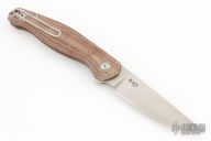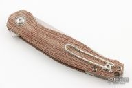This Sonoma by Giant Mouse features a stonewashed drop point blade with notched thumbrest and flipper tab. The handle has a natural canvas micarta scales and titanium liners with titanium pivot collar and backspacer. Matching reversible tip up pocket clip.  Includes the original box.  Excellent condition.