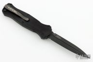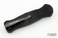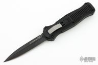 "Introducing an OTF like none-other.. The new Infidel® is rapidly making believers out of many a skeptic. Built for strength and reliability the patent pending double-action mechanics get it done over the long haul. Grab on and you will find the handle grip rock-solid with its patented machined in Presidio® style bi-directional tread pattern, and overall generous sizing for gloved hands. Intuitively pressure the release-slide forward and its spear-point edged steel fires and locks up with a unique three-point retention system with amazingly negligible blade play. Reverse the process and the blade retracts in a rapid blur of motion. The Benchmade Infidel is a special operator’s fantasy come true." Includes original box, sheath and papers. Has some light scuffs, otherwise excellent condition.