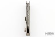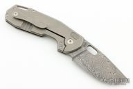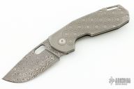Named after the Norse god Odin, the Jesper Voxnaes designed Odino folder from Viper Knives is a rousing new model and a convincing everyday carry choice. This mid-size frame lock knife has a titanium handle with milled circle patterns and is outfitted with a matching, tip-up pocket clip. The clip point, Damascus blade has a clean look and elongated thumb hole opener. The opening is enhanced by a bearing pivot system. Includes a display case. Excellent Condition.