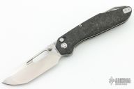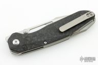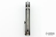 The contoured scales are palm filling and feel extremely good in hand. The premium scales material also gives that extra luxury feeling for the user's hands. The integrated titanium lanyard loop in the back of the knife gives more grip while reverse gripping, or even at standard grip as it has jimping all the way up the spine.