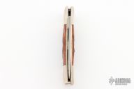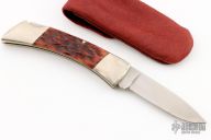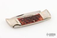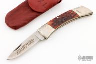 This Canoe Slipjoint by Schrade and George Wostenholm features a satin finished blade with nail nick. The handle has nickel silver bolsters with integral liners, jigged bone covers, steel backspacer. Comes with original box and papers. Has some patina, otherwise excellent condition. #09764