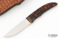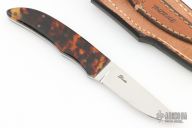 This Small Utility from D'Alton Holder features a mirror polished blade with .123" blade stock and .723" blade depth, full tang construction. The handle has tortiose scales. Excellent condition. Comes with a hand tooled brown leather sheath.