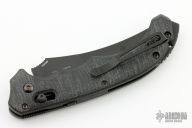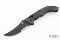 Well-balanced, symmetrical, eye-catching, The Bedlam has a black coated 154CM partially serrated blade that is released with the AXIS locking button.  Safety on top of knife. Sculpted black G10 handle fits comfortably and securely. Reversible tip up black clip. Comes with Benchmade box and papers. Excellent condition.