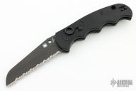 This Spyderco Autonomy features a black fully serrated blade, H-1 blade steel. The handle has black G-10 scales, black stainless steel liners, and a tip up reversible clip. Excellent condition. This knife is a factory second.