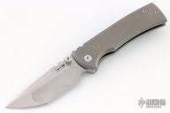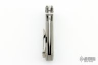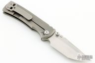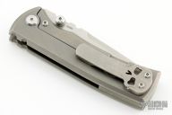 This Chaves Ultramar Redencion Tanto features a satin finished blade with the Chaves logo, dual thumbstuds, and notched thumbrest. The handle is made up of tumbled titanium, skull pocket clip (positioned for tip up carry), and a matching titanium backspacer. Has overtravel stop. Blade is centered when closed, and locks up with no play. Comes with box and additional clip. Excellent Condition.