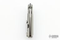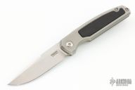 This Caballero Front Flipper by Enrique Pena features a satin finished blade with a front flipper and notched thumbrest. The handle has a titanium frame, ebony wood inlays with a titanium backspacer and matching tip up pocket clip. Includes a Pena X-Series padded box. Light scratches are visible on the knife otherwise the knife is in good condition.