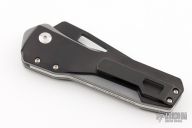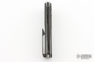 This knife features a black drop point blade with thumbhole. The handle has a G-10 and black titanium frame with a tip up titanium pocket clip. Stainless steel backspacer. Comes with original hard case and papers. Excellent condition.