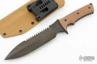 The Jungle Fighter is a close-quarters weapon with bite. Its spear point designed blade has a sharpened top edge and spine hooks that are just plain mean. The blade is fitted with an index choil for choking up and fine detail cuts.