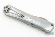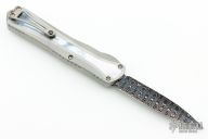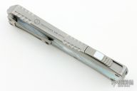 This Manticore X by Heretic Knives features a Double Edged Vegas Forge Blued Damascus blade. The handle has a two-tone stainless steel frame with mother of pearl inlays, stainless thumb slide with mother of pearl inlay, and a tip down stainless steel clip with ceramic ball. Comes with original box, zippered case and COA dated 11/23 and s/n 019. New from maker!