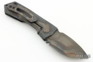 This Metro framelock folder features a "Phantom" finish blade with a single notch thumbrest. The handle is comprised of a flamed titanium frame and contoured black G-10 scale with a lanyard hole at the butt. Matching titanium clip positioned for tip up carry. Nice detent, lockup and blade seating. Comes with original box and papers. Has some scuffs, otherwise excellent condition.