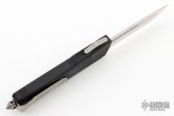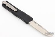 This Troodon by Microtech features a Satin finished single edged blade. Black aluminum handle with glass breaker and stainless steel clip. Dated 06/2014, S/N 11966. Comes with original box and papers. Excellent condition.