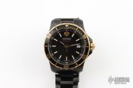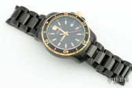 A modern take on elevated sporty style. Cast in deep ebony black and warm rose gold PVD, this watch is a contemporary-cool statement piece. The 40mm case frames a black sunray dial with Swiss Super-LumiNova® accents at the hand and hour markers, a date window, and our iconic dot at 12 o’clock. A diver-inspired bezel and fluid bracelet complete this must-have design.