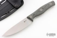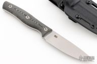 This EDC-4 FFG from Survive Knives features a stonewashed drop point blade with full flat grind, .152" blade stock and 1.158" blade depth, full tang construction. The handle has black linen micarta scales. Includes a kydex sheath with belt loop and original box. Excellent condition.
