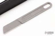 This Scalpel+ by Schwarz Knives features a stonewashed Magnacut blade with notched thumb and finger rests, lanyard hole, .129" blade stock and .623" blade depth, integral construction. Comes with a black leather slip sheath and COA. Comes with original packaging. Excellent condition.