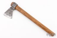 This Trade Tomahawk by Ryan Johnson features a brut de forge finished head with a 2.75" cutting edge, 3.5" from edge to haft. Has a wood haft turned on the 1903 Defiance gunstock lathe. New from maker!