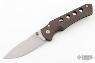 This Scout from Jason Guthrie features a hand rub satin finish Harpoon Drop Point blade with single thumb stud and notched thumbrest. The handle is comprised of Copper Lava carbon fiber scales, titanium inlaid lockbar, barrel spacers, and titanium tip up pocket clip. Comes with zipper case, and COA dated 1 NOV 2023. New from Maker.