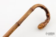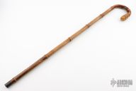 This antique sword cane features hidden spring mace inside the shaft. The cane is made from bamboo wood and has a crook handle. Has some patina and light scratches, but overall good condition for its age. NOTE: the closed length will refer to the length when the mace is sheathed in the cane. The overall length is just that of the mace and handle.