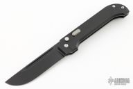 The KatanaX is a stout and stylish EDC automatic knife from D Rocket Designs. This model has a black titanium handle and a black finished blade. The clean modern design is accentuated by satin polished hardware, safety, and push button. Comes with original box. New from maker!