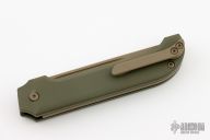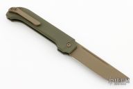 The KatanaX is a stout and stylish EDC automatic knife from D Rocket Designs. This model has a green titanium handle and a FDE finished blade. The clean modern design is accentuated by matching hardware, safety, and push button. Comes with original box. New from maker!