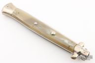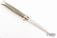Angelo Campolin Sr. was born in 1923 in Maniago, Italy. He worked on perfecting his knife making skills before WWII and at this time made his first switchblades. After the war, in 1947 he started his company and made 30 stilettos with the marking “Angelo Campolin”. In the 1970’s Angelo’s son Gianni started to work in the company and they were specializing in folding hunting knives and also manual folding stilettos for the Robert Klaas company in Solingen Germany with their Kissing Cranes mark. In 2002 American switchblade collectors Dan Fuller, Brad West, and Tim Zinser were visiting Maniago and enjoying a few glasses of wine in a bar with Angelo Jr. and Gianni. The discussion was about a new name for some knife projects they wanted to pursue. It was Brad West that suggested the tang stamp should be AGA, for Angelo, Gianni, Angelo, thus representing three generations in the knife making business. The Campolins liked it and it stuck. In the beginning it was just a few items, but grew to the point where now there are 12 models and different scale options. The goal has been to offer quality switchblades using the old methods and traditions. Being a collector himself, Angelo Jr. knows what others like. The company headquarters has moved to Austria with production still in the original Maniago shop, as well as the others in Maniago that produce the knives for A.G.A. Campolin.