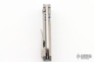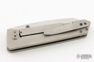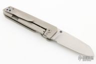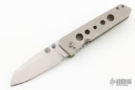 This One Off framelock folder by KC Gray features a hand rub satin finished blade with a single thumbstud. The handle has a bead blast finished titanium frame, with matching tip up clip. Rides on bearings, nice detent, lockup and blade seating. Comes with COA dated 1-22. Comes with zippered case. Has some scratches, good condition otherwise.