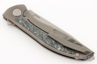This Neon NL by Shirogorov features tumbled blade with notched thumbrest and flipper. The handle has a tumbled titanium frame with crazy micarta inlays. Rides on MRBS. Comes with original box and COA. Excellent condition.