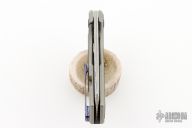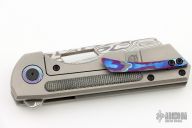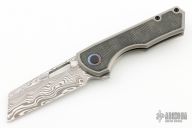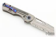 This EDC Foundry Yeager-M v2 by Brian Brown features a wharncliffe Damasteel blade with thumbhole and flipper. The handle has a tumbled titanium frame with black canvas micarta inlays, DarkTi titanium pivot collars, tip up clip and backspacer. Comes with a zippered case, original black titanium clip, backspacer, pivot collars and COA. Excellent condition.