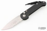 This LUDT auto by Microtech Knives has a stonewash partially serrated edge and a black aluminum frame with bead blasted hardware. Stainless steel clip. Dated 01/2023 and serial number 29629. Comes with original box and papers. Excellent condition.