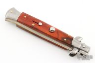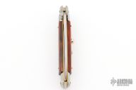 This Swivel Bolster Auto has a polished stainless steel spear point 4mm thick blade. The handle is composed of a steel front and rear bolsters, brass liners all complemented by cocobolo scales. Excellent Condition.