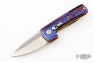 The Harlock is a stout and stylish EDC automatic knife from D Rocket Designs. This model has a MokuTi and Mokume handle and a satin finished blade, tip up titanium clip. The clean modern design is accentuated by satin polished hardware, safety, and push button. Excellent condition. Comes with original box.