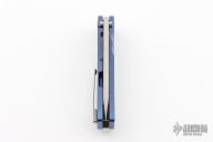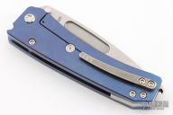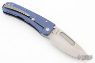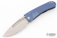This Midi Marauder from Medford Knife and Tool features tumble finished drop point blade with fullers.  The handle has a tumbled and anodized titanium frame with a tumbled tip up clip over satin barrel spacers. Excellent detent, lockup, and seating. Original box, case and papers. Excellent condition.