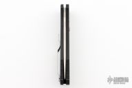 This Python side-opening automatic from Dynamic Knife Designs has a satin finish plain edge blade and a black aluminum handle. Coil spring. Stainless steel clip. Sliding safety. Excellent condition. Comes with original box and papers.