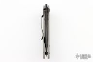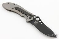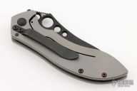 This Blackwood design Mini-Skirmish by Benchmade features a bead blasted titanium frame with a black spear point blade, thumbhole. The pocket clip is missing. Comes with benchmade drawstring pouch. Has a couple light scuffs, excellent condition otherwise.