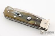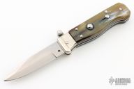 Angelo Campolin Sr. was born in 1923 in Maniago, Italy. He worked on perfecting his knife making skills before WWII and at this time made his first switchblades. After the war, in 1947 he started his company and made 30 stilettos with the marking “Angelo Campolin”. In the 1970’s Angelo’s son Gianni started to work in the company and they were specializing in folding hunting knives and also manual folding stilettos for the Robert Klaas company in Solingen Germany with their Kissing Cranes mark. In 2002 American switchblade collectors Dan Fuller, Brad West, and Tim Zinser were visiting Maniago and enjoying a few glasses of wine in a bar with Angelo Jr. and Gianni. The discussion was about a new name for some knife projects they wanted to pursue. It was Brad West that suggested the tang stamp should be AGA, for Angelo, Gianni, Angelo, thus representing three generations in the knife making business. The Campolins liked it and it stuck. In the beginning it was just a few items, but grew to the point where now there are 12 models and different scale options. The goal has been to offer quality switchblades using the old methods and traditions. Being a collector himself, Angelo Jr. knows what others like. The company headquarters has moved to Austria with production still in the original Maniago shop, as well as the others in Maniago that produce the knives for A.G.A. Campolin.