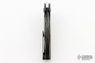 With a very modern design aesthetic by Kombou (aka Grzegorz Grabarski), the Nogard flipper from Bestech brings a high-end offering for your next EDC. The handles are shaped and milled to comfortably lock the knife into your hand and feature an inlay that threads through the entire knife, giving it an interesting aesthetic. The handles are made from stonewashed titanium and come with several different inlay choices that match the rest of the knife, so you can find one to suit your tastes. The blade is in a modified sheepsfoot style with a sleek profile and beveled thumb hole that flows into the rest of the knife almost seamlessly. The blade comes in high-quality M390, a stainless steel that is a favorite among high-end knife makers. The finish on the blade varies from a black stonewash and a black/satin two-tone that Bestech does so well. The pivot action on the knife is driven by ceramic ball bearings that are so smooth, you might miss the action altogether.