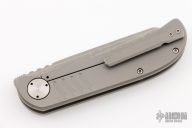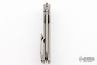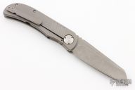 This LEXK Framelock from Burger Knives features a tumble finished blade with notched front flipper and thumbrest. The handle is comprised of milled and bead blasted titanium frame with tumbled titanium tip up pocket clip. Comes with a velcro case and COA dated 6/05/16. Excellent condition.