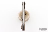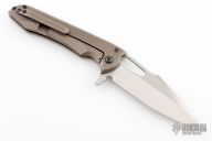 This Mako framelock flipper from Gavko Knives features a satin finished blade with a flipper. The handle has anodized, milled and tumbled titanium scales that have a titanium clip positioned for tip up carry. Nice detent, lockup and blade seating. Comes in a zippered pouch. Excellent condition.