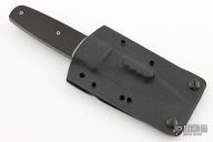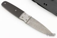 This Kinzhal by Bud Nealy features a satin finished blade with .124" blade thickness and 1.036" blade depth, full tang construction. Damascus dovetail bolsters, wood scales. Comes with Kydex sheath. Has some light scuffs and scratches, great condition otherwise.