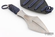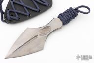 This Apocalypse Spearhead by Angryman Knives features a double edged blade with fullers, thumb and finger grooves, notched tang, .252" blade stock and 2.385" blade depth, full tang construction with paracord wrap. Comes with a kydex sheath. Excellent condition.