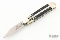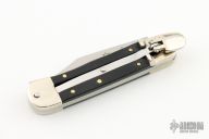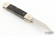 This leverlock auto by Hubertus features a mirror polished drop point blade, nickel silver double bolsters, ebony scales, and brass liners and pins. Opens with a nice snap. Very fast opening. Comes with original box. New condition.
