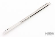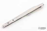 Hand made from stainless steel. Has a pinch locking type mechanism. Separate the handle with your fingers to close.