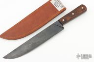 Custom forged and historically-accurate reproduction of the first James (Jim) Bowie knife used at the Vidalia Sandbar Fight/Duel on September 19, 1827, near Natchez, Mississippi. The original used by Jim Bowie was forged by blacksmith Jesse Clifft at brother Rezin Bowie's request. Rezin Bowie later described the knife as a 9-1/4" long, 1/4" thick, 1-1/2" wide. Witnesses to the fight described it as "a large butcher knife", having no clip-point, a straight back, no hand guard and with a simple riveted wood scale handle.