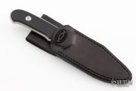 This NY Special from Zac Buchanan features a hand rubbed satin finished blade with a false top edge, and G10 scales. .17" blade stock and .75" blade depth. Full tang construction. Excellent fit and finish. Comes with a black leather sheath. Excellent condition.