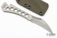 This fixed blade knife by Jason Stout and JBB features a chisel ground hawkbill blade with .156" blade stock and .925" blade depth. Comes with a kydex sheath. Excellent condition.