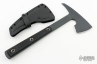 This Little Bird 2015 Batch A by RMJ Tactical features a 3" cutting edge and a 3" spike. Made from a single piece of .285" 4140 steel. The handle has textured black G-10 scales. Well balanced, excellent feel in hand. Comes with kydex sheath. Has a couple light scuffs, excellent condition otherwise.