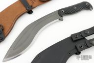 The Kukri is designed with power and motion in mind and there is perhaps no other blade that defines these qualities quite as well. The RMJ rendition of this classic design is a true, heavyweight chopper. At 15.5" overall, featuring a 10.5" blade made from 80CRV2 Carbon Steel and weighing in at 1 pound 8 ounces, this is a beast of a knife! It’s weight and length, combined with a curved inside cutting edge, makes this a truly formidable blade.