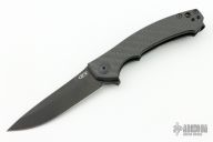 The Dmitry Sinkevich designed ZT 0450CF knife is a compact version of the award-winning 0454 folder. It has an S35VN stainless steel blade with a black DLC finish. A flipper and the KVT ball-bearing pivot produce reliable, quick one-hand deployment. The titanium handle has a sturdy frame lock and a stylish carbon fiber scale that contrasts nicely with the black blade. A reversible tip-up carry pocket clip rounds out the package. Has a custom MXG Gear deep carry clip. S/N 26917. Includes original clip. Has a couple light scuffs, otherwise excellent condition.